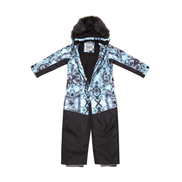 Vaikiškas neperšlampamas ir neperpučiamas kombinezonas Orui laidi išorinė medžiaga Vidinė dalis iš minkšto pamušalinio audinio Nuimamas gobtuvas prie apykaklės prisegamas kibiu lipduku Gobtuvo krašte ir gale įsiūta reguliuojama guminė juostelė Rankovių apačioje tamprus rankogalis Rankovių apačia reguliuojama Priekyje juostele dengtas užtrauktukas Priekyje įsiūtos kišenės su užtrauktuku Į juosmenį įsiūta guminė juostelė su skylutėmis sagoms Apatinė klešnių dalis iš patvaraus Cordura audinio Klešnių apačioje apsaugos nuo sniego Klešnių apačioje įsiūta guminė juostelė su fiksatoriais Vandeniui atsparios siūlės Gobtuvas apkraštuotas nuimamu dirbtiniu kailiu Viršutinis audinys su šviesą atspindinčiomis detalėmis
