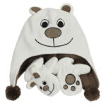 Kūdikių kepurės ir pirštinių fliso komplektas.