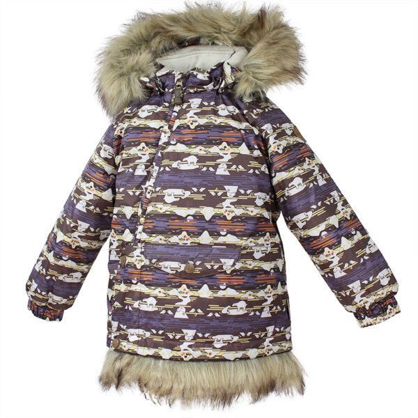 Mažylių žieminė striukė su 300g šiltinimu. Striukė turi minkštą koralinio fliso pamušalę ir nuimamą kailio gobtuvas.