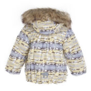 A quilted jacket for toddlers made of soft fabric with a thick padding for winter walks. The jacket is lined with comfortable „Coral-fleece” in the body and taffeta lining in the sleeves for easier hand slipping. The hood, which can be removed with snaps, protects against cold wind, the elastic cuffs protect against snow, and plenty of reflective details add safety when moving around in the dark.