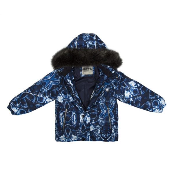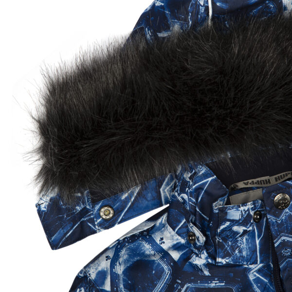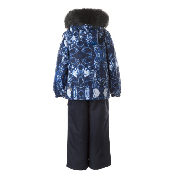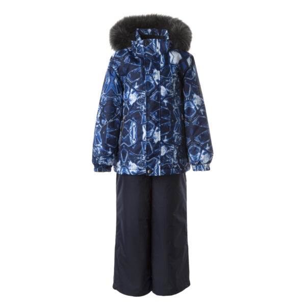 Vaikiškas striukės ir kelnių komplektas Neperšlampamas ir neperpučiamas, orui laidus viršutinis audinys Striukės ir kelnių vidinė pusė iš minkšto pamušalinio audinio Rankovių apačioje įsiūta guminė juostelė Nuimamas gobtuvas prie apykaklės prisegamas kibiu lipduku Gobtuvas apkraštuotas nuimamu dirbtiniu kailiu Kelnės aukštesniu liemeniu ir turi reguliuojamas elastines petnešas Juosmenyje įsiūta guminė juostelė Klešnių apačioje apsaugos nuo sniego Klešnių apačioje įsiūta guminė juostelė su fiksatoriais Vandeniui atsparios siūlės Kelnėse nėra klešnių vidinės siūlės Ant striukės ir kelnių šviesą atspindinčios detalės