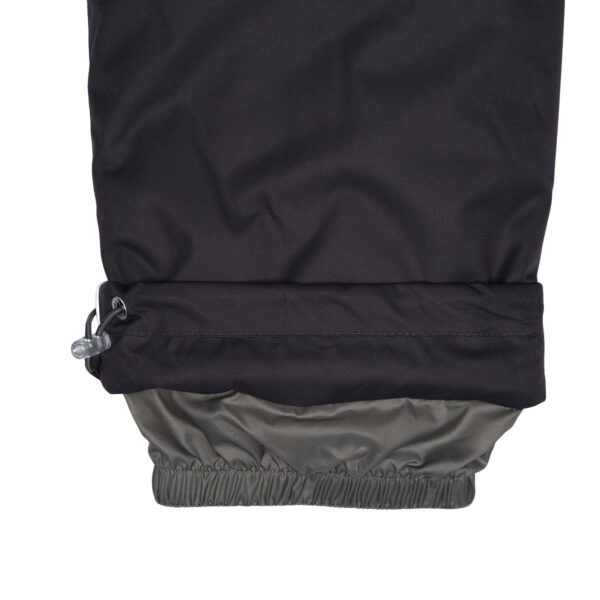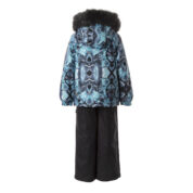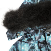 Vaikiškas striukės ir kelnių komplektas Neperšlampamas ir neperpučiamas, orui laidus viršutinis audinys Striukės ir kelnių vidinė pusė iš minkšto pamušalinio audinio Rankovių apačioje įsiūta guminė juostelė Nuimamas gobtuvas prie apykaklės prisegamas kibiu lipduku Gobtuvas apkraštuotas nuimamu dirbtiniu kailiu Kelnės turi nuimamas ir reguliuojamas elastines petnešas Juosmenyje įsiūta guminė juostelė Klešnių apačioje apsaugos nuo sniego Klešnių apačioje įsiūta guminė juostelė su fiksatoriais Vandeniui atsparios siūlės Ant striukės ir kelnių šviesą atspindinčios detalės