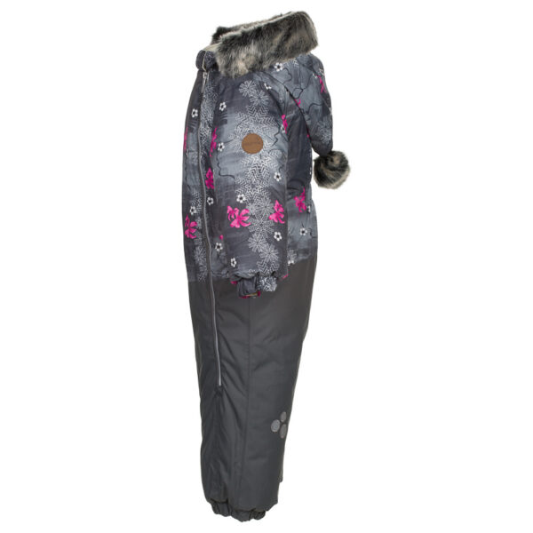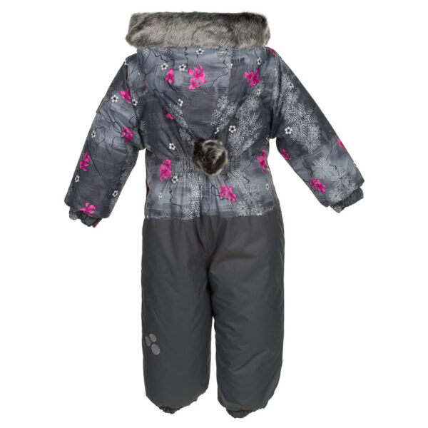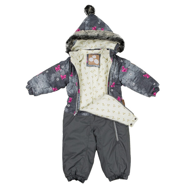 Mažylių žiemos kombinezonas su 300g šiltinimu. Kombinezonas turi minkštą medvilnės flanelio pamušalą ir kvėpuojantį bei vandeniui nelaidų išorinį audinį, kuris puikiai tinka mūsų klimatui. Kombinezonas turi sėdimojo siūlę ir šoninius siūles palei juosmenį, užklijuotus vandeniui nelaidumui. Kombinezonas turi nuimamą gobtuvas su atskirai nuimamu kailiu, užtrauktuko kišenę skanėstams laikyti ir silicono gumą po padu. Iki 80 dydžio rankovių galus ir apatinį kraštą galima užraitoti keliais judesiais, ir pirštinės bei batai nereikalingi.