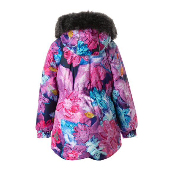 Vaikiška neperšlampama ir neperpučiama striukė Orui laidi išorinė medžiaga Vidinė striukės dalis iš minkšto pamušalinio audinio Nuimamas gobtuvas prie apykaklės prisegamas kibiu lipduku Rankovių apačioje ir ant juosmens įsiūta guminė juostelė Užsegama užtrauktuku Priekyje įsiūtos kišenės su užtrauktuku Gobtuvas apkraštuotas nuimamu dirbtiniu kailiu Viršutinis audinys su šviesą atspindinčiomis detalėmis
