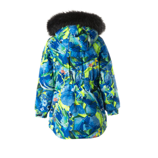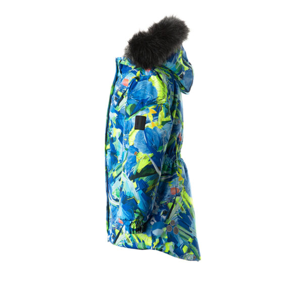 Vaikiška neperšlampama ir neperpučiama striukė Orui laidi išorinė medžiaga Vidinė striukės dalis iš minkšto pamušalinio audinio Nuimamas gobtuvas prie apykaklės prisegamas kibiu lipduku Rankovių apačioje ir ant juosmens įsiūta guminė juostelė Užsegama užtrauktuku Priekyje įsiūtos kišenės su užtrauktuku Gobtuvas apkraštuotas nuimamu dirbtiniu kailiu Viršutinis audinys su šviesą atspindinčiomis detalėmis