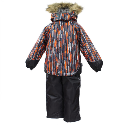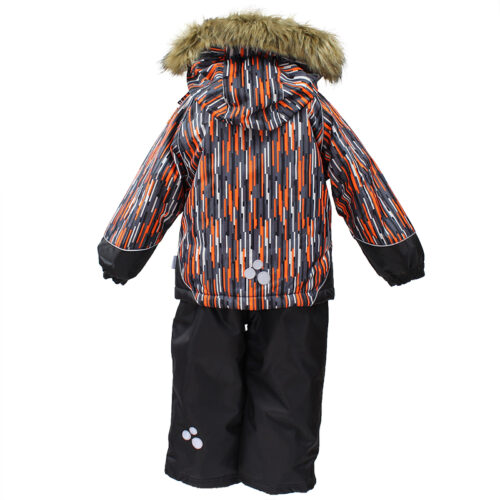 Vaikiškas žieminis komplektas. Komplektą sudaro striukė su 300 g pašltinimu ir aukšto liemens kelnės su 160 g pašiltinimu. Striukė turi nuimamą kailinį gobtuvą, apsaugantį nuo šalto vėjo, klijuotas peties siūles, guminę virvelę su fiksatoriumi apačioje ir kišenes su užraktais vertingiems daiktams laikyti. Kelnės su reguliuojamomis elastingomis petnešomis, klijuotomis sėdimomis ir šoninėmis siūlėmis bei apsaugą nuo sniego. Daug atšvaitinių detalių, leidžiančių saugiai judėti net tamsoje.