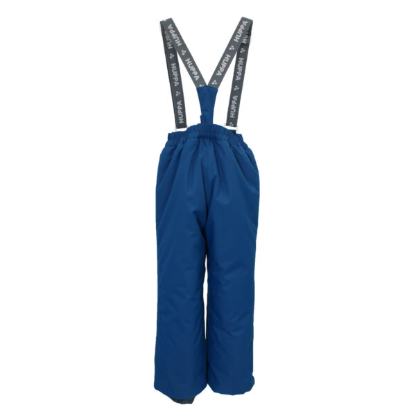 Vaikiškos neperšlampamos ir neperpučiamos kelnės Orui laidi išorinė medžiaga Kelnių vidinė pusė iš minkšto pamušalinio audinio Reguliuojamos nuimamos petnešos Juosmenyje įsiūta elastinga guminė juostelė Klešnių apačioje įsiūta guminė juostelė su fiksatoriais ir apsauga nuo sniego Vandeniui atsparios siūlės Kelnių apačioje šviesą atspindinčios detalės