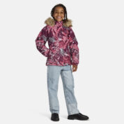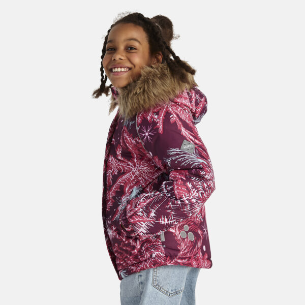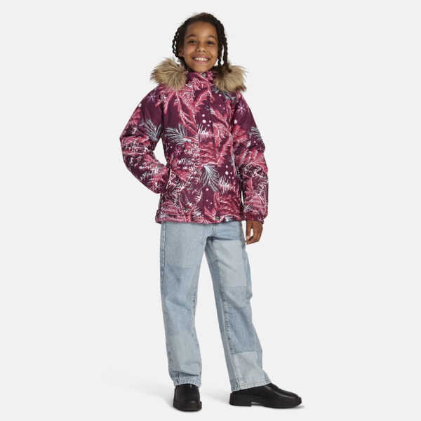 Vaikiška vandenį ir vėją sulaikanti striukė Orui laidi išorinė medžiaga Vidinė striukės dalis iš minkšto pamušalinio audinio Nuimamas gobtuvas prie apykaklės prisegamas kibiu lipduku Rankovių apačioje ir ant juosmens įsiūta guminė juostelė Priekyje kibia juostele dengtas užtrauktukas Priekyje įsiūtos kišenės su užtrauktuku Gobtuvas apsiūtas dirbiniu kailiu Viršutinis audinys su šviesą atspindinčiomis detalėmis