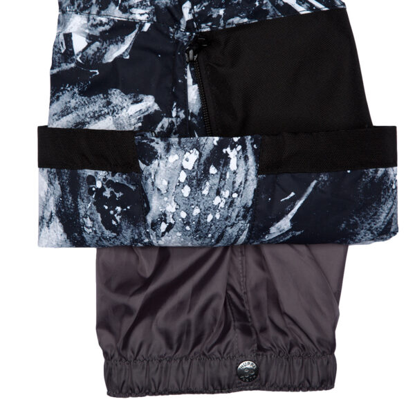 Vaikiškos neperšlampančios ir vėjui atsparios kelnės. Kvėpuojantis audinys. Viduje minkštas pamušalas. Reguliuojamos nuimamos petnešos. Reguliuojamas liemuo. Elastinė juosta liemens nugaros srityje. Kišenės su užtrauktukais. Sniego apsaugos kojų galuose. Užtrauktukas reguliuojamas kojų galų plotį. Vandeniui atsparios užlydytos siūlės. Šviesą atspindintys elementai apačioje.