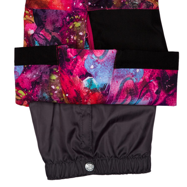 Children’s waterproof and windproof pants. Breathable fabric. Soft mesh lining on the inside of the pants. Adjustable removable braces. Adjustable waist. Integrated elastic band at the back of the waist. Integrated zippered pockets. Snow gaiters at leg ends. Zipper-adjustable leg end width. Waterproof taped seams. Reflective elements at the bottom.