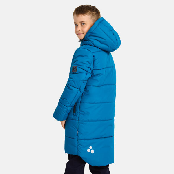 Vaikiškas neperšlampamas ir neperpučiamas paltas su 300 g šiltinamuoju sluoksniu. Laidus orui išorinis audinys. Reguliuojamas gobtuvas. Tamprūs rankogaliai. Priekyje dvikryptis užtrauktukas. Kišenės su užtrauktukais. Šviesą atspindinčios detalės ant viršutinio audinio.