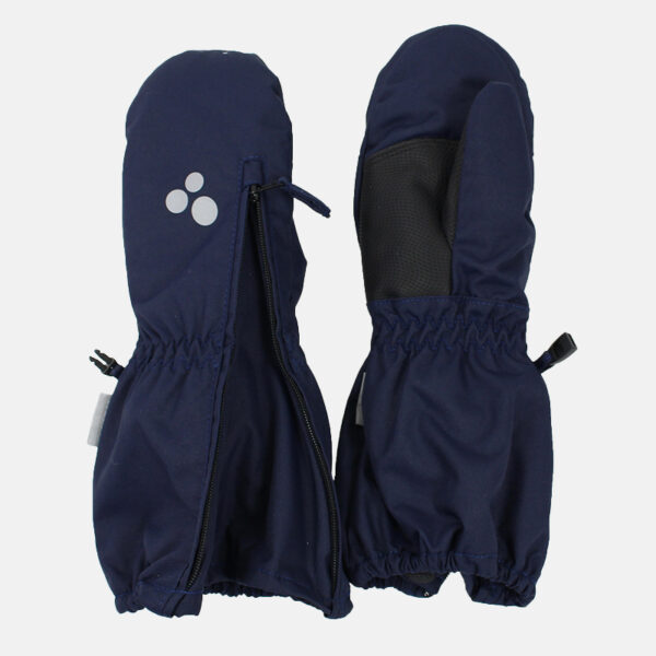 Vaikiškos neperšlampamos ir neperpučiamos pirštinės su pamušalu. Orui laidi išorinė medžiaga. Ant riešo ir apačioje įsiūta patogi guminė juostelė. Užsegama užtrauktuku. Pirštinių vidinė pusė iš minkšto flisinio audinio. Pirštinių porą galima susegti mažu segtuku. Viršutinis audinys su šviesą atspindinčiomis „Huppa“ detalėmis.