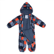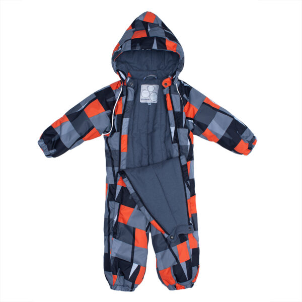 Kombinezonas tinka tiek kūdikiams, tiek mažyliams, kurie jau vaikšto. Kombinezonas su vėjui ir vandeniui atspariu viršutiniu audiniu, gražiu ir minkštu medvilnės flanelės pamušalu viduje ir 200 g pašiltinimu. Kvėpuojantis audinys. Elastinė juosta rankovių ir kojų galuose bei aplink kapišoną. Elastinės pėdų juostelės. 68-80 dydžių kombinezonuose rankovės ir kojų galai gali būti patogiai užlenkti. Ilgi užtrauktukai palengvina vaiko rengimą, apačios ir šonų siūlės užlydytos, kojų galai uždengti viršutiniu audiniu iš vidaus, kad vaikas liktų sausas. Pridėti šviesą atspindintys elementai, kad vaikas būtų matomas tamsoje. Nuimamas kapišonas saugus žaidimams lauke – tvirtinamas spaudžiamomis sagomis, kad neįstrigtų.