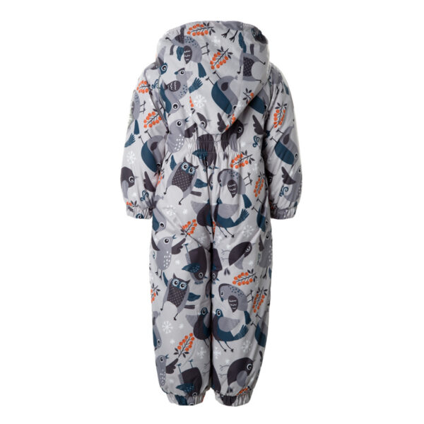 Šis vaikiškas kombinezonas tinka kūdikiams ir jau vaikštantiems mažyliams. Kombinezono išorinis audinys yra neperpučiamas ir neperšlampamas, viduje – maloniai minkštas medvilninis flanelinis pamušalas ir 200 g kamšalas. Orui laidi išorinė medžiaga. Rankovių ir klešnių apačioje ir gobtuvo krašte įsiūta guminė juostelė. Komplekte yra elastingos guminės juostelės kelnėms prisegti prie batų 68–80 dydžiuose patogūs atverčiami rankogaliai ir klešnių apačia. Ilgi užtrauktukai leidžia mažylį aprengti greitai ir lengvai, sėdmenų ir šoninės vandeniui atsparos siūlės yra klijuotos, o kojų dalis iš vidaus taip pat padengta išoriniu audiniu. Kad vaikas būtų matomas net tamsoje, kombinezone yra šviesą atspindinčios detalės. Nuimamas gaubtuvas yra saugus žaidžiant lauke – kad neužsikabintų, jis yra prisegamas kibia juostele. Paprastas ir saugus pasirinkimas kūdikiams ir mažiems vaikams!