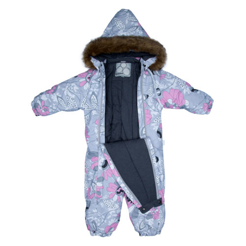 Klasikinis žiemos kombinezonas, skirtas kasdienėms užduotims atlikti mūsų mažiausiems. Kombinezonas yra su minkštu medvilniniu pamušalu ir kvėpuojančiu bei vandeniui atspariu išoriniu audiniu, gerai tinkančiu mūsų klimatui. Mažas žvilgančias akis lengva aprengti dviejų pilnų užtrauktukų dėka. Klijuotos siūlės leidžia mažyliui nerūpestingai džiaugtis komfortu būti sausu ir šiltu. Kombinezonas turi nuimamą gaubtą su sintetiniu kailiuku ir guminius laikiklius ant pado. Iki 86 dydžio rankogaliai ir kojagaliai su atvartais ,kuriuos keliais judesiais galima užlenkti ir paslėpti kumštukus ar kojytes arba atlenkti ir uždėti pirštines ar minkštus batukus kūdikiui.Sėdymos vietos siūlės klijuotos.