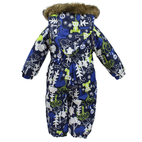 Klasikinis žiemos kombinezonas, skirtas kasdienėms užduotims atlikti mūsų mažiausiems. Kombinezonas yra su minkštu medvilniniu pamušalu ir kvėpuojančiu bei vandeniui atspariu išoriniu audiniu, gerai tinkančiu mūsų klimatui. Mažas žvilgančias akis lengva aprengti dviejų pilnų užtrauktukų dėka. Klijuotos siūlės leidžia mažyliui nerūpestingai džiaugtis komfortu būti sausu ir šiltu. Kombinezonas turi nuimamą gaubtą su sintetiniu kailiuku ir guminius laikiklius ant pado. Iki 86 dydžio rankogaliai ir kojagaliai su atvartais ,kuriuos keliais judesiais galima užlenkti ir paslėpti kumštukus ar kojytes arba atlenkti ir uždėti pirštines ar minkštus batukus kūdikiui.Sėdymos vietos siūlės klijuotos.