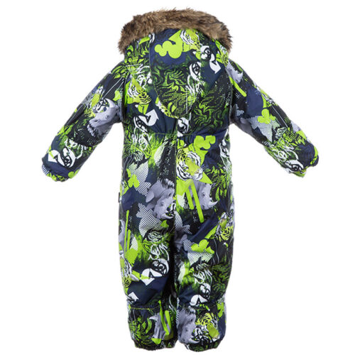 Vaikiška neperšlampanti ir vėjui atspari kombinezonas. Kvėpuojantis audinys. Tinka tiek kūdikiams, tiek mažyliams, kurie jau vaikšto. Viduje gražus ir minkštas flanelės pamušalas. Elastinė juosta rankovių ir kojų galuose. Nuimamas kapišonas tvirtinamas prie apykaklės spaudžiamomis sagomis saugumui. 68-80 dydžių kombinezonuose rankovės ir kojų galai gali būti patogiai užlenkti. Vandeniui atsparios užlydytos siūlės. Kombinezonas be vidinės kojų siūlės. Elastinės pėdų juostelės. Nuimamas dirbtinis kailis ant kapišono. Šviesą atspindintys elementai ant audinio užtikrina saugumą tamsoje.
