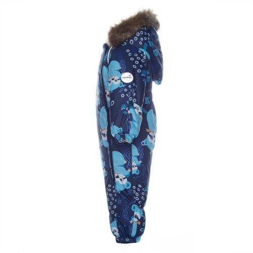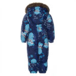 Klasikinis žiemos kombinezonas, skirtas kasdienėms užduotims atlikti mūsų mažiausiems. Kombinezonas yra su minkštu medvilniniu pamušalu ir kvėpuojančiu bei vandeniui atspariu išoriniu audiniu, gerai tinkančiu mūsų klimatui. Mažas žvilgančias akis lengva aprengti dviejų pilnų užtrauktukų dėka. Klijuotos siūlės leidžia mažyliui nerūpestingai džiaugtis komfortu būti sausu ir šiltu. Kombinezonas turi nuimamą gaubtą su sintetiniu kailiuku ir guminius laikiklius ant pado. Iki 86 dydžio rankogaliai ir kojagaliai su atvartais ,kuriuos keliais judesiais galima užlenkti ir paslėpti kumštukus ar kojytes arba atlenkti ir uždėti pirštines ar minkštus batukus kūdikiui.Sėdymos vietos siūlės klijuotos.
