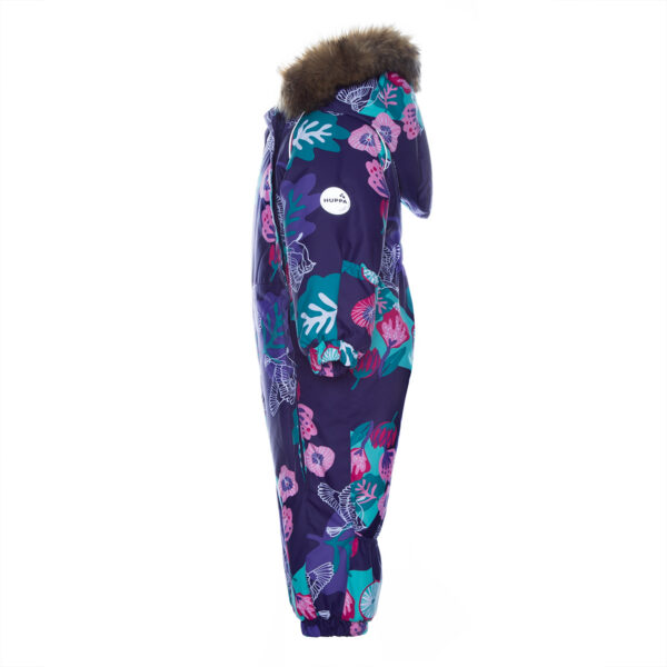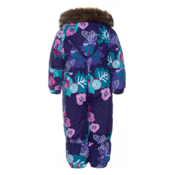 Vaikų neperšlampantis ir vėjui atsparus kombinezonas. Kvėpuojantis audinys. Tinka tiek kūdikiams, tiek mažyliams, kurie jau moka vaikščioti. Gražus ir minkštas flanelio pamušalas viduje. Elastinės juostelės rankovių ir kojų galuose. Nuimamas kapišonas tvirtinamas prie apykaklės spaudžiamaisiais guzikais saugumo užtikrinimui, kai nešiotojas užsikabina. Rankovių ir kojų galus galima patogiai užlankstyti 68-80 dydžiuose. Neperšlampančios sulydytos siūlės. Kombinezonas neturi vidinių kojų siūlių. Elastingi kojos dirželiai. Nuimamas dirbtinio kailio apvadas kapišone. Atšvaitiniai elementai audinyje prideda saugumo dėvint tamsoje.