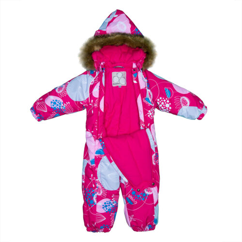 Children’s waterproof and windproof overall. Breathable fabric. Suitable for both babies or for toddlers who can already walk. Nice and soft flannel lining on the inside. Integrated elastic band at sleeve and leg ends. Removable hood attaches to the collar with press-studs to ensure safety when the wearer gets stuck. Sleeve and leg ends can be conveniently rolled down in sizes 68–80. Waterproof taped seams. The overall has no inner leg seam. Elastic foot straps. Removable faux fur trim on hood. Reflective elements on the fabric add safety when wearing in the dark.
