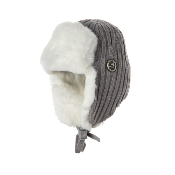 Vaikiška kepurė su pamušalu, iš minkštų merino mišinio siūlų. Kepurės vidus iš medvilnės trikotažo. Priekyje ir prie ausų avikailio imitacijos pamušalas. Ant kepurės šviesą atspindintis „Huppa“ logotipas.