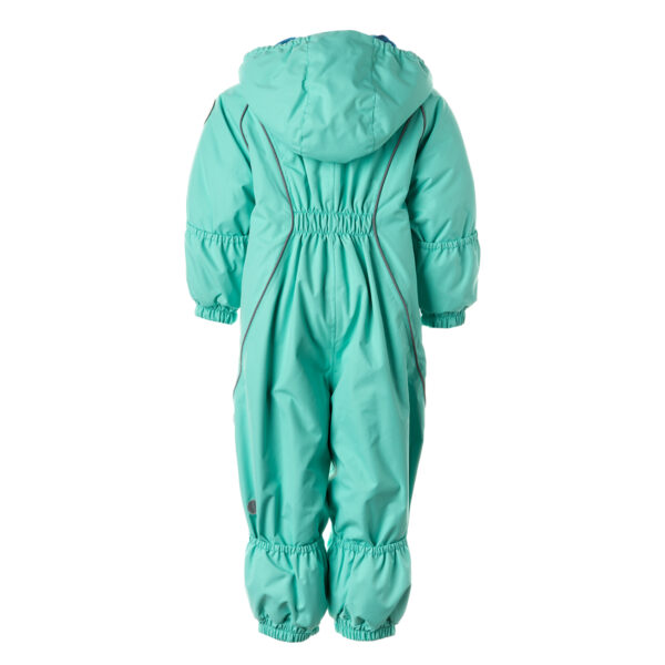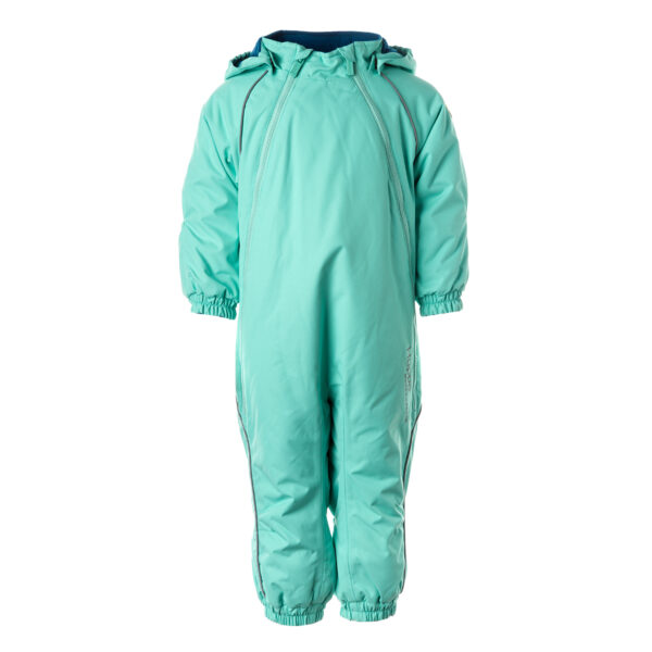 Kūdikių neperšlampamas ir neperpučiamas demisezoninis kombinezonas. Orui laidi išorinė medžiaga. Kombinezono vidus iš flanelinio pamušalinio audinio. Rankovių ir klešnių apačioje ir gobtuvo krašte įsiūta guminė juostelė. Nuimamas gobtuvas prie apykaklės prisegamas kibiu lipduku 68–80 dydžiuose patogūs atverčiami rankogaliai ir klešnių apačia. Vandeniui atsparios klijuotos siūlės. Komplekte yra silikoninės ir guminės juostelės tvirtinimui prie batų. Viršutinis audinys su šviesą atspindinčiomis detalėmis.