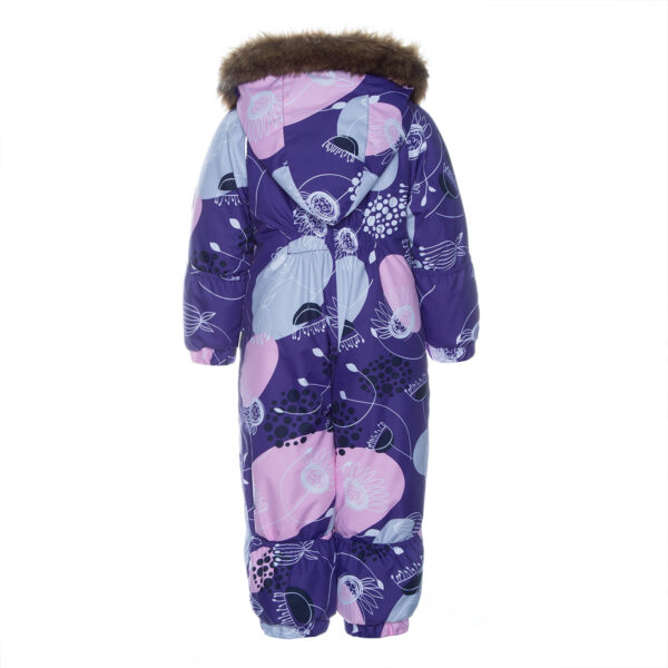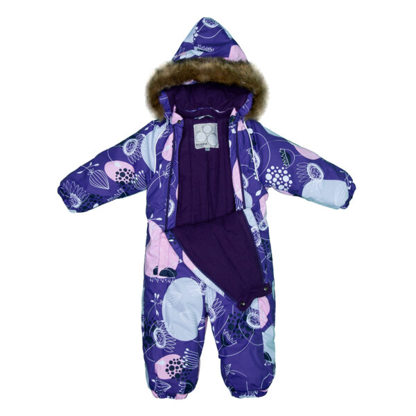 Vaikiškas neperšlampamas ir neperpučiamas kombinezonas. Orui laidi išorinė medžiaga. Tinka kūdikiams ir jau vaikštantiems mažyliams. Kombinezono viduje minkštas ir malonus flanelinis pamušalas. Ant rankogalių ir klešnių galuose įsiūta guminė juostelė. Nuimamas gobtuvas prie apykaklės prisegamas tvirtu kibiu uždegimu 68–80 dydžiuose patogūs atverčiami rankogaliai ir klešnių apačia. Vandeniui atsparios klijuotos siūlės. Kombinezone nėra klešnių vidinės siūlės. Komplekte yra elastingos guminės juostelės kelnėms prisegti prie batų. Gobtuvas apkraštuotas nuimamu dirbtiniu kailiu. Tamsiu metų laiku išorinio audinio šviesą atspindinčios detalės suteikia saugumo.