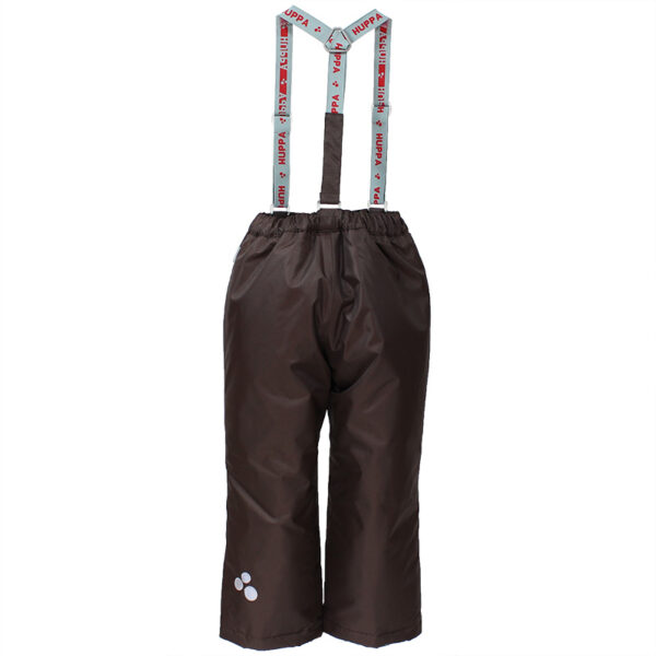 Klasikinės vaikų žiemos kelnės su petnešomis. Kelnės su patogiu taftos pamušalu ir kvėpuojančiu bei neperšlampančiu viršutiniu audiniu, puikiai tinkančiu mūsų klimatui. Nuimamos petnešos, elastikumas liemens srityje ir sniego apsauga apačioje daro dėvėjimą patogiu. Kelnės su 160 g pašiltinimu, sėdynės siūlė užlydyta.