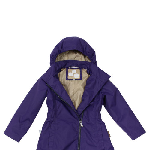 Mielas pavasarinis-rudeninis mergaičių lietpaltis be pašiltinimo. Gražaus, ilgu užtrauktuku užsegamo lietpalčio pamušalas yra iš lengvos taftos, todėl lengviau apsivilkti, rankai šiek tiek slystant rankove. Patogesniam dėvėjimui ties juosmeniu įsiūtos gumos, vandeniui atsparios pečių siūlės ir gobtuvas, saugantis nuo lietaus ir vėjuoto oro. Kad būtų saugiau dėvėti, lietpalčio nugaros apačioje ir dešinėje pusėje pridėti atšvaitai. Priekyje yra dvi kišenės, į kurias jauna mergina gali įsidėti pirštines ar kitą būtiną daiktą.