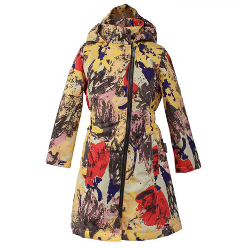 Mielas lengvai pašiltintas 40g pavasarinis-rudeninis mergaičių lietpaltis . Gražaus, ilgu užtrauktuku užsegamo lietpalčio pamušalas yra iš lengvos taftos, todėl lengviau apsivilkti, rankai šiek tiek slystant rankove. Patogesniam dėvėjimui ties juosmeniu įsiūtos gumos, vandeniui atsparios pečių siūlės ir gobtuvas, saugantis nuo lietaus ir vėjuoto oro. Kad būtų saugiau dėvėti, lietpalčio nugaros apačioje ir dešinėje pusėje pridėti atšvaitai. Priekyje yra dvi kišenės, į kurias jauna mergina gali įsidėti pirštines ar kitą būtiną daiktą.