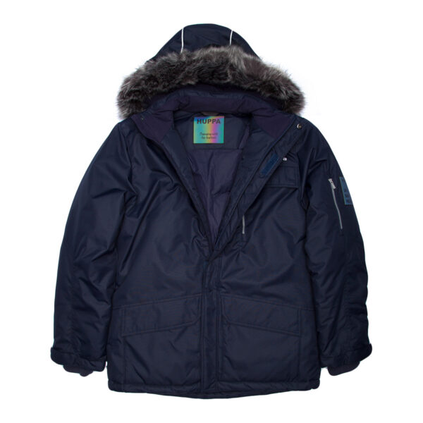 Men´s winter jacket with 300g insulation. Wind and water resistant fabric with the best technical characteristics. Taped seams, ribbed inner cuffs in the sleeves, adjustable sleeve ends and an adjustable hem keep you warm and dry even when doing winter sports. For the best visibility in the dark, the jacket has been added with reflective details and the front of the chest is decorated with a reflective application. The removable hood is safe – it is fastened with snaps to prevent getting caught and its furry edge is also removable. The jacket has front pockets and a chest and shoulder pocket, all equipped with a zipper.