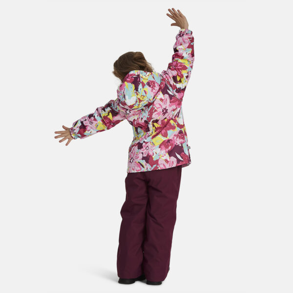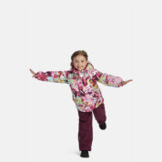 Vaikiškas striukės ir kelnių komplektas Neperšlampamas ir neperpučiamas, orui laidus viršutinis audinys Striukės ir kelnių vidinė pusė iš minkšto pamušalinio audinio Rankovių apačioje, juosmenyje ir gobtuvo krašte įsiūta guminė juostelė Nuimamas gobtuvas prie apykaklės prisegamas kibiu lipduku Kelnės aukštesniu liemeniu ir turi reguliuojamas elastines petnešas Juosmenyje įsiūta guminė juostelė Klešnių apačioje įsiūta guminė juostelė su fiksatoriais Vandeniui atsparios klijuotos siūlės Kelnėse nėra klešnių vidinės siūlės Ant striukės ir kelnių šviesą atspindinčios detalės