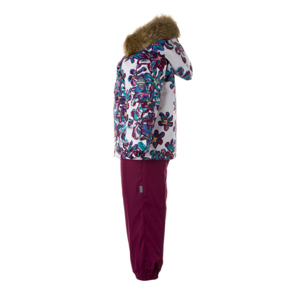 Vaikiška žiemos komplektas. Komplektas su gražiu minkštu medvilnės flanelės pamušalu ir kvėpuojančiu bei neperšlampančiu viršutiniu audiniu, puikiai tinkančiu mūsų klimatui. Striukė su 300g, kelnės su 160g pašiltinimu. Aukštu liemeniu kelnės su užlydyta sėdynės siūle, leidžiančia mažyliui mėgautis žiemos džiaugsmais nerūpestingai ir tuo pačiu išlikti sausam ir šiltam. Patogesniam dėvėjimui komplektas turi nuimamą kailinio kapišoną, reguliuojamas elastines petnešas ir dvi puikias kišenes radinių laikymui. Šviesą atspindintys elementai iškirpimuose leidžia saugiai žaisti net tamsoje.