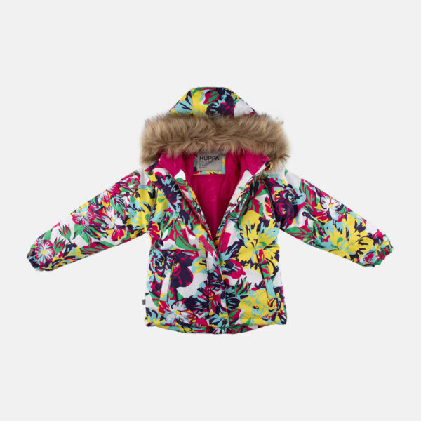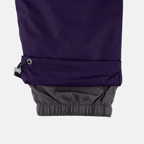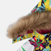 Vaikiškas striukės ir kelnių komplektas. Neperšlampamas ir neperpučiamas, orui laidus viršutinis audinys. Striukės ir kelnių vidinė pusė iš minkšto pamušalinio audinio. Rankovių apačioje ir ant juosmens įsiūta guminė juostelė. Nuimamas gobtuvas prie apykaklės prisegamas kibiu lipduku. Gobtuvas apsiūtas dirbiniu kailiu. Kelnės aukštesniu liemeniu ir turi reguliuojamas elastines petnešas. Juosmenyje įsiūta guminė juostelė. Klešnių apačioje įsiūta guminė juostelė su fiksatoriais. Vandeniui atsparios klijuotos siūlės. Kelnėse nėra klešnių vidinės siūlės. Ant striukės ir kelnių šviesą atspindinčios detalės.