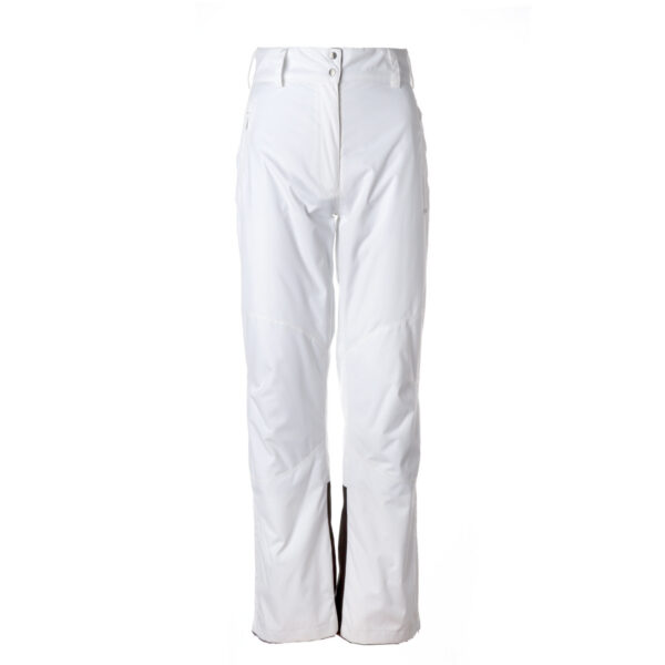 Patogios moteriškos neperšlampamos ir neperpučiamos kelnės, 80 g pašildymas Orui laidi išorinė medžiaga Kelnių vidinė pusė iš minkšto pamušalinio audinio Nugaroje, juosmenyje įsiūta guminė juostelė Klešnių apačioje apsaugos nuo sniego Klešnių apačios plotis reguliuojamas užtrauktuku Vandeniui atsparios klijuotos siūlės Viršutinis audinys su šviesą atspindinčiomis detalėmis