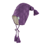 Megzta žiemos kepurė mažyliams. Kepurės pamušalas pagamintas iš medvilnės trikotažo, o viršus iš 50% merino vilnos, 50% akrilo siūlų.