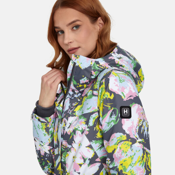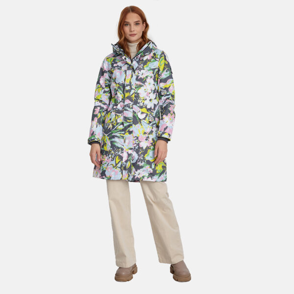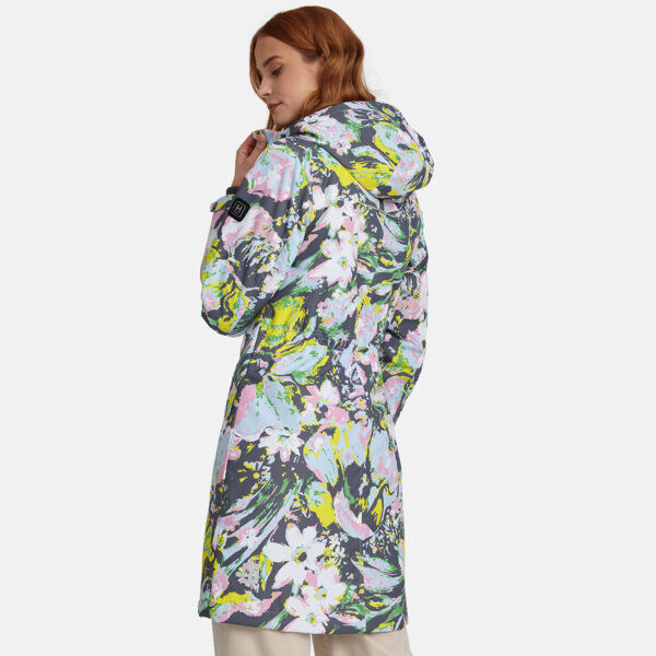 Moteriška neperšlampama ir neperpučiama parka su 40 g šiltinamuoju sluoksniu pavasariui ir rudeniui. Laidus orui išorinis audinys. Parkos vidinė dalis iš minkšto pamušalo audinio. Reguliuojami gobtuvas ir rankogaliai. Juosmens srityje guminės virvelės tunelis su stabdikliais. Neperšlampamos dengtos siūlės. Šviesą atspindinčios detalės ant viršutinio audinio.