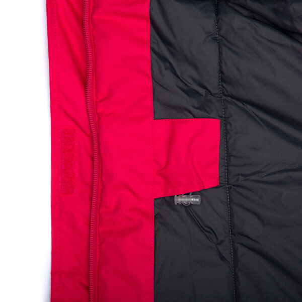 Moteriška neperšlampama ir neperpučiama žieminė parka. Orui laidi išorinė medžiaga. Vidinė parkos dalis iš minkšto pamušalinio audinio. Nuimamas gobtuvas prie apykaklės prisegamas kibiu lipduku. Rankovių apačioje tamprus rankogalis. Juosmenyje įsiūta guminė juostelė su fiksatoriais. Vandeniui atsparios klijuotos siūlės. Gobtuvas apsiūtas dirbiniu kailiu. Viršutinis audinys su šviesą atspindinčiomis detalėmis.