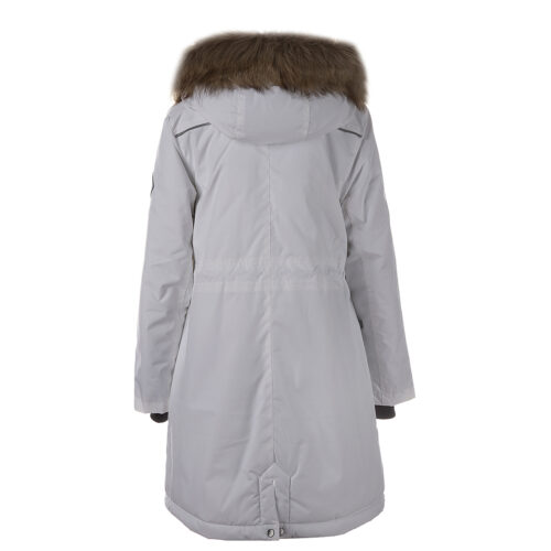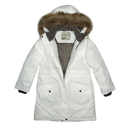Children’s waterproof and windproof winter parka. Breathable fabric. Soft lining on the insid.e Removable snap-on hood. Ribbed cuffs at sleeve ends. Drawstring tunnel with stoppers on waist. Waterproof taped seams. Faux fur trim on hood. Reflective elements on fabric.