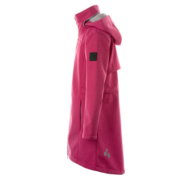 Vaikiškas neperpučiamas paltas iš Softshell audinio Viršutinėje pusėje taškinis šviesą atspindintis raštas Palto vidinė pusė yra minkšta Į apykaklę įleidžiamas gobtuvas Įsiūtos kišenės su užtrauktuku Juosmenyje įsiūta guminė juostelė su fiksatoriais