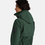 Moteriškas neperpučiamas paltas iš softshell audinio.. Viršutinėje pusėje taškinis šviesą atspindintis raštas.. Palto vidinė pusė yra minkšta. Į apykaklę įleidžiamas gobtuvas. Įsiūtos kišenės su užtrauktuku.. Juosmenyje įsiūta guminė juostelė su fiksatoriais.