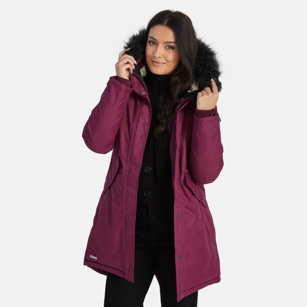 Moteriška neperšlampama ir neperpučiama žieminė parka. Orui laidi išorinė medžiaga. Parkos pamušalas iš minkšto Teddy Fur audinio.Gobtuvas nusisega,sintetinis kailis taip pat.. Rankogaliai su velcro reguliavimu. Dvipusis užtrauktukas .Kišenės su atvartais užsegamos magnetu. Juosmenyje įsiūta guminė juostelė su fiksatoriais. Vandeniui atsparios klijuotos siūlės. Šviesą atspindinčios detalės.