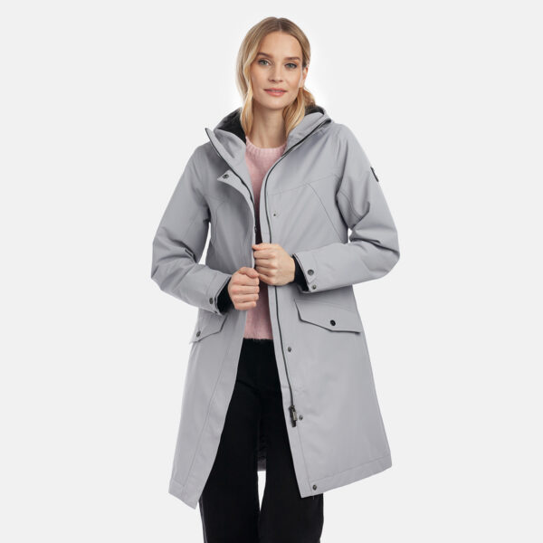 Moteriška neperšlampama ir neperpučiama parka su 40 g šiltinamuoju sluoksniu pavasariui ir rudeniui. Laidus orui išorinis audinys. Parkos vidinė dalis iš minkšto pamušalo audinio. Reguliuojami gobtuvas ir rankogaliai. Juosmens srityje guminės virvelės tunelis su stabdikliais. Neperšlampamos dengtos siūlės. Šviesą atspindinčios detalės ant viršutinio audinio.