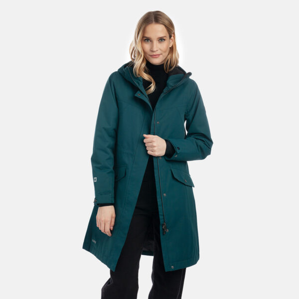 Moteriška neperšlampama ir neperpučiama parka su 40 g šiltinamuoju sluoksniu pavasariui ir rudeniui. Laidus orui išorinis audinys. Parkos vidinė dalis iš minkšto pamušalo audinio. Reguliuojami gobtuvas ir rankogaliai. Juosmens srityje guminės virvelės tunelis su stabdikliais. Neperšlampamos dengtos siūlės. Šviesą atspindinčios detalės ant viršutinio audinio.