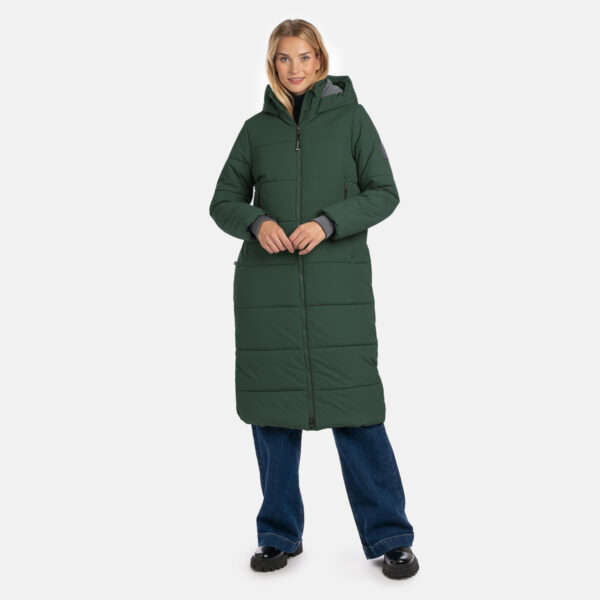 Moteriškas žieminis paltas iš minkšto audinio su 300g pašiltinimu Huppa Term(sintetinė medžiaga). Neperšlampamas ir neperpučiamas viršutinis audinys. Tiesaus kirpimo.Palto pamušalas iš minkštos taffetos audinio. Rankovės turi trikotažinį apsauginį manžetą .Dvipusis užtrauktukas. Kišenės su užtrauktuku. Viršutinis audinys su šviesą atspindinčiomis detalėmis.