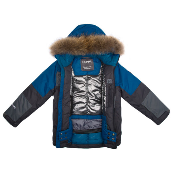 The NIKLAS boys´ jacket with heat-reflecting HuppaTec lining has 300g insulation. The outer fabric is breathable, windproof and waterproof. The jacket has ribbed inner cuffs on the sleeves and a snow guard that keeps you warm and dry. The outer fabric has reflective details.