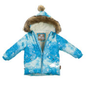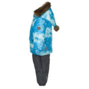 Vaikų žiemos komplektas. Striukė turi 300 g šiltinimą ir minkštu daliniu flanelės bei tafetos pamušalu. Aukšto liemens kelnės turi 160 g šiltinimą ir taip pat maloniai minkštu daliniu flanelės bei tafetos pamušalu, bei elastinę juostą nugaroje patogesniam dėvėjimui. Komplekto striukė turi nuimamą kailinis gobtuvas, atšvaitines detales ant dviejų kišenių sklendų. Kelnės turi reguliuojamus elastingus palaikymo dirželius ir puikią kišenę radiniams saugoti.