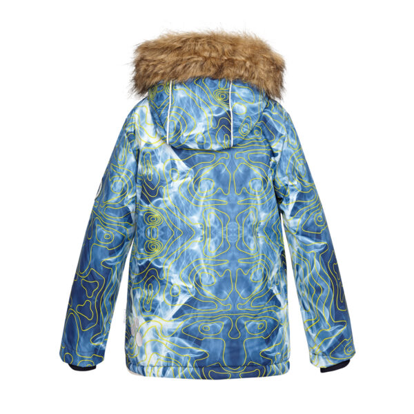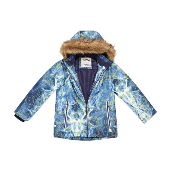 Berniukų žiemos striukė. Vėjui ir vandeniui atsparūs viršutinis audinys, pašiltinimas 300g. Geriausiam matomumui tamsoje striukė su šviesą atspindinčiais elementais. Elastinės vidinės apyrankės rankovėse išlaiko vaiką šiltą ir sausą. Nuimamas kapišonas saugus – tvirtinamas spaudžiamomis sagomis, kad neįstrigtų, jo kailio kraštas taip pat nuimamas. Striukės priekinės kišenės su užtrauktukais.