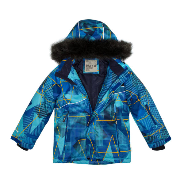 Vaikiška neperšlampama ir neperpučiama striukė Orui laidi išorinė medžiaga Vidinė striukės dalis iš minkšto pamušalinio audinio Nuimamas gobtuvas prie apykaklės prisegamas kibiu lipduku Rankovių apačioje tamprus rankogalis Rankovių apačia reguliuojama Priekyje juostele dengtas užtrauktukas Priekyje įsiūtos kišenės su užtrauktuku Vandeniui atsparios klijuotos siūlės Gobtuvas apkraštuotas nuimamu dirbtiniu kailiu Viršutinis audinys su šviesą atspindinčiomis detalėmis