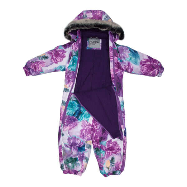 Kūdikių neperšlampamas ir neperpučiamas modernaus kirpimo kombinezonas Orui laidi išorinė medžiaga Kombinezono vidus iš flanelinio pamušalinio audinio Rankogaliuose, klešnių apačioje ir nugaros juosmenyje įsiūta guminė juostelė Nuimamas gobtuvas prie apykaklės prisegamas kibiu lipduku, todėl neužsikabins vaikui žaidžiant lauke 68–80 dydžiuose patogūs atverčiami rankogaliai ir klešnių apačia Vandeniui atsparios klijuotos siūlės Komplekte yra silikoninės ir guminės juostelės tvirtinimui prie batų Gobtuvas apsiūtas dirbiniu kailiu Aukšto lygio išorinio audinio techninės charakteristikos užtikrina, kad vaikai galės žaisti lauke net ir šaltą žiemą Klešnių apačios vidinė pusė padengta pagrindiniu audiniu, todėl išlieka sausa Kelios šviesą atspindinčios detalės ant viršutinio audinio užtikrina matomumą iš visų pusių tamsiu paros metu